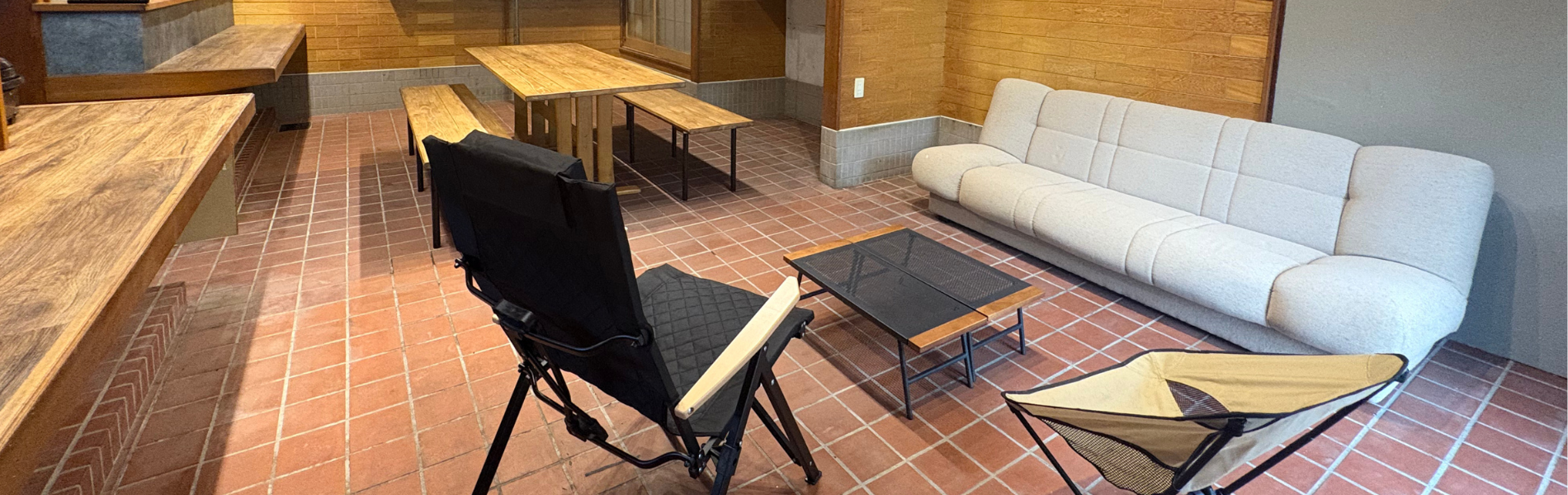 飲食店をリノベーションした一棟貸切宿。開放的な土間リビングでゆったり過ごせます。港町の散策や島内観光の拠点としても便利。自転車の室内持ち込みも可能で、自由な滞在スタイルを楽しめます。